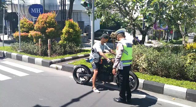 Dalam dua jam mulai pukul 10.00 WITA, polisi menindak enam warga lokal dan tiga WNA yang melakukan pelanggaran tidak memakai helm dan motor tanpa TNKB.