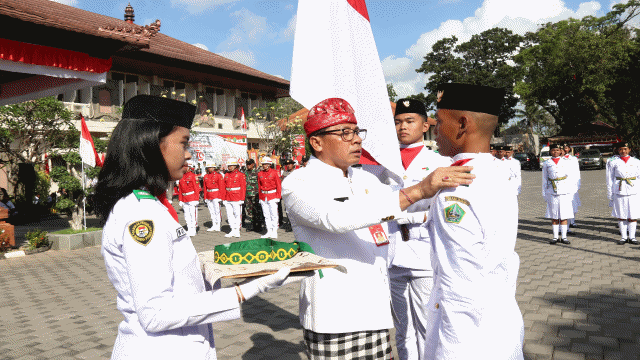 PANTAUBALI.COM, TABANAN – Sebanyak 70 anggota Pasukan Pengibar Bendera Pusaka (Paskibraka) Kabupaten Tabanan dikukuhkan pada Rabu (14/8/2024).