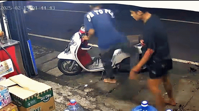 Tangakapan layar rekaman CCTV, kejadian penusukan terhadap pria bernama Kadek Parwata (31) di depan Warung Auna, Jalan Nangka Utara, Kelurahan Tonja, Banjar Tanguntiti, Denpasar Utara, Kamis (13/2/2025).